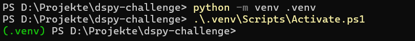 Zuerst schaffe ich mir eine Arbeitsumgebung. Dazu setze ich mit venv eine virtuelle Umgebung auf.