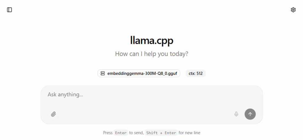 llama-server -m embeddinggemma-300M-Q8_0.gguf --embeddings -c 512 -ngl 99 --host 0.0.0.0 --port 8081